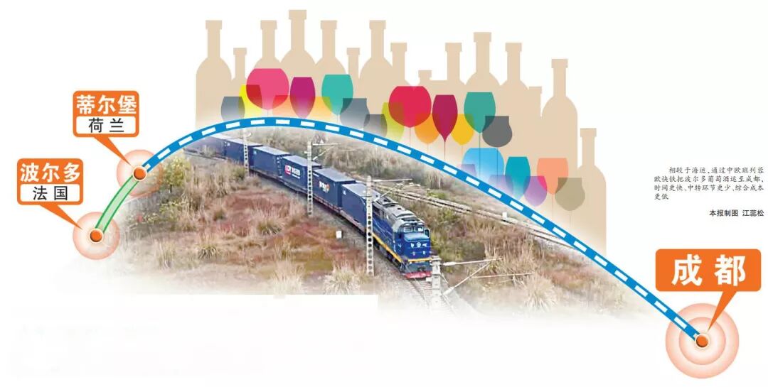 位于法国西南部的波尔多,是世界上最大的葡萄酒产地之一。波尔多葡萄酒因口感柔顺细腻、风情万种,而被誉为“法国葡萄酒皇后”。过去每年有价值数亿欧元的葡萄酒从波尔多乘坐货轮漂洋过海来到中国,整个旅程至少要花一个月。而如果搭乘上中欧班列蓉欧快铁呢?“物流时间至少节省一半,而且价格还会更便宜。”四川蓉欧智联科技有限公司(以下简称“蓉欧智联”)创始人石蕤锋说。
