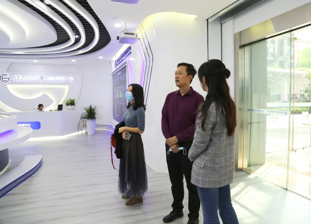 最后,金造权副局长一行在协会成员陪同下参观了“川品崛起”成都标杆产业带品牌加速中心,并与在场公司负责人深入交流。他高度认同孵化器给创业团队、高校师生提供的办公环境及资源扶持,同时他认为成都打造的“买全川·卖全球”跨境电商模式,将有效增强成都外贸发展内生动力和产业粘性,实现高质量发展。