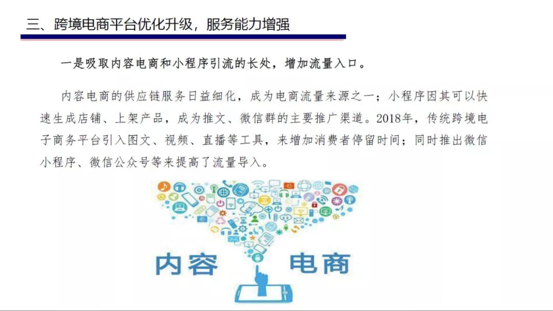 1、社交平台与跨境电子商务融合,形成短视频电商,成为跨境电子商务的新增长点;