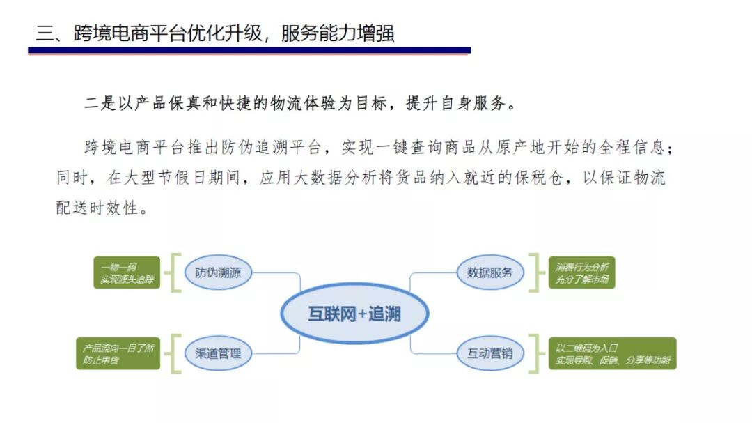 1、跨境电子商务交易总额不断增长,结构优化升级;