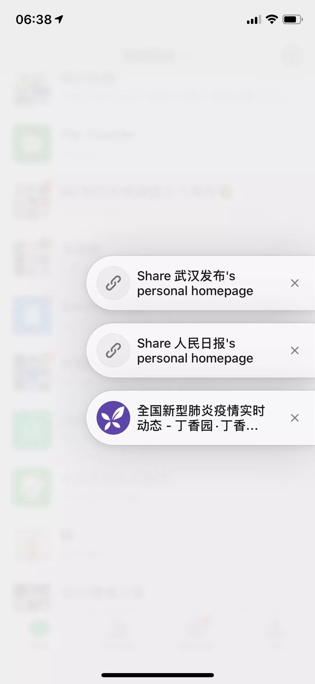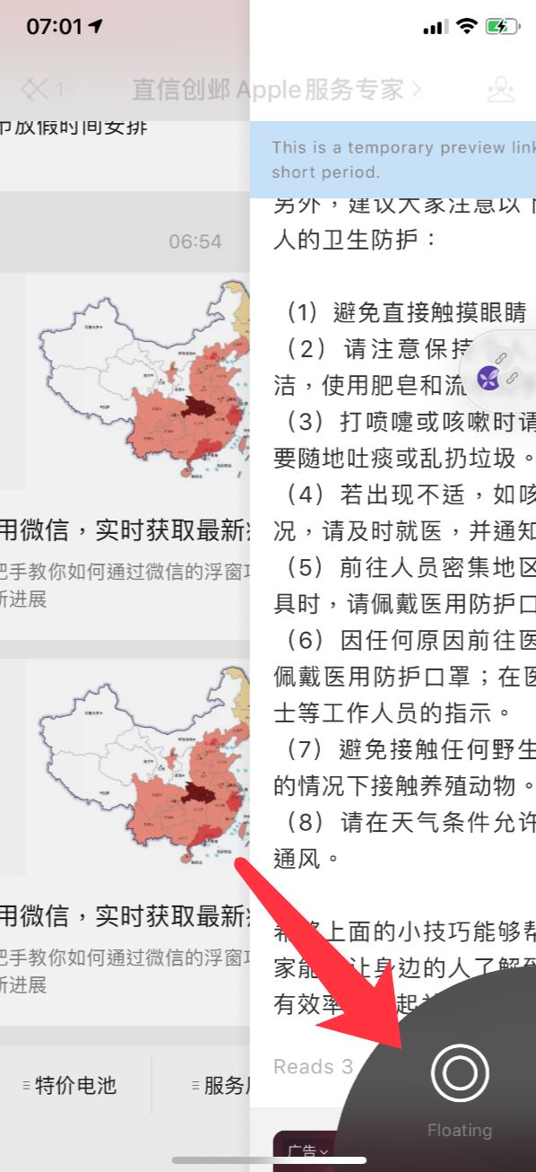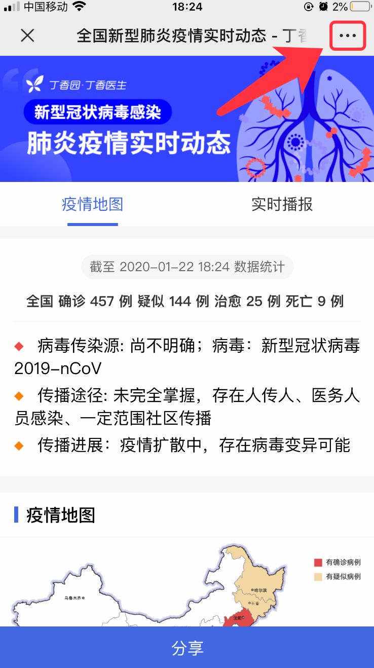 这样微信就会把丁香园的疫情实时动态网站,以浮窗的形势在微信中实时显示了: