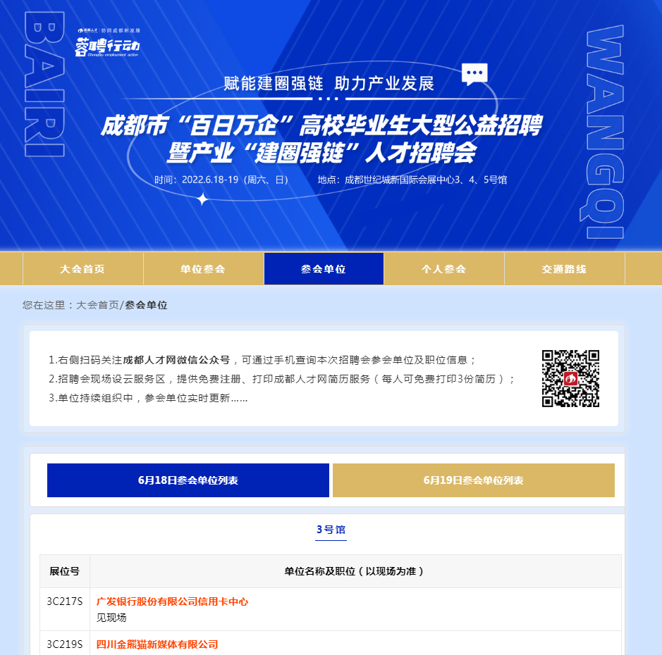 登录成都人才网(www.rc114.com)点击专题页面-参会单位查看。