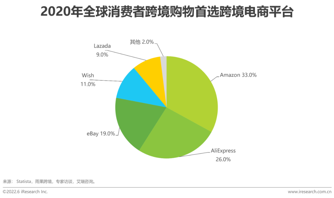 Amazon是目前最大的全球外贸交易平台。Amazon已覆盖了北美、欧洲、日本等发达国家和地区较强购买力的消费者。据2020年Statista数据,全球消费者的首选跨境电商平台中,26%为Amazon,19%为AliExpress,11%为eBay。跨境电商平台行业集中度高,头部平台掌握双边市场数据,消费者数据不流通,跨境电商卖家不完全掌握平台数据,在进行广告投放等推广策略时,高度依赖平台所给的数据,处于行业被动地位。此外,Amazon等跨境电商平台本身既是交易空间的管理者,也是交易市场的参与者。凭借平台的品牌效应以及便利的配套物流服务,平台自营在与跨境电商卖家的竞争关系中占领上风。