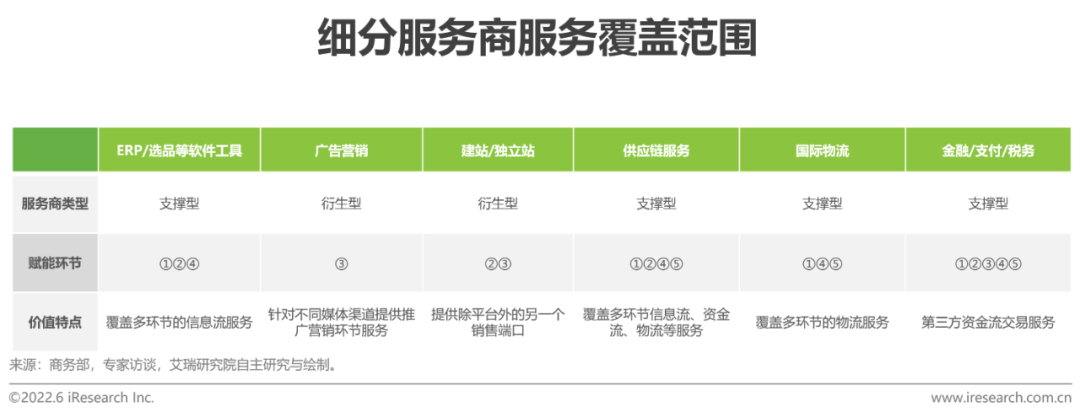 不同跨境服务商在不同环节上为跨境电商企业赋能