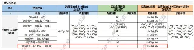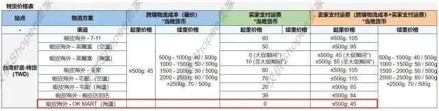 10月Shopee台湾站点新增OK MART海运渠道。