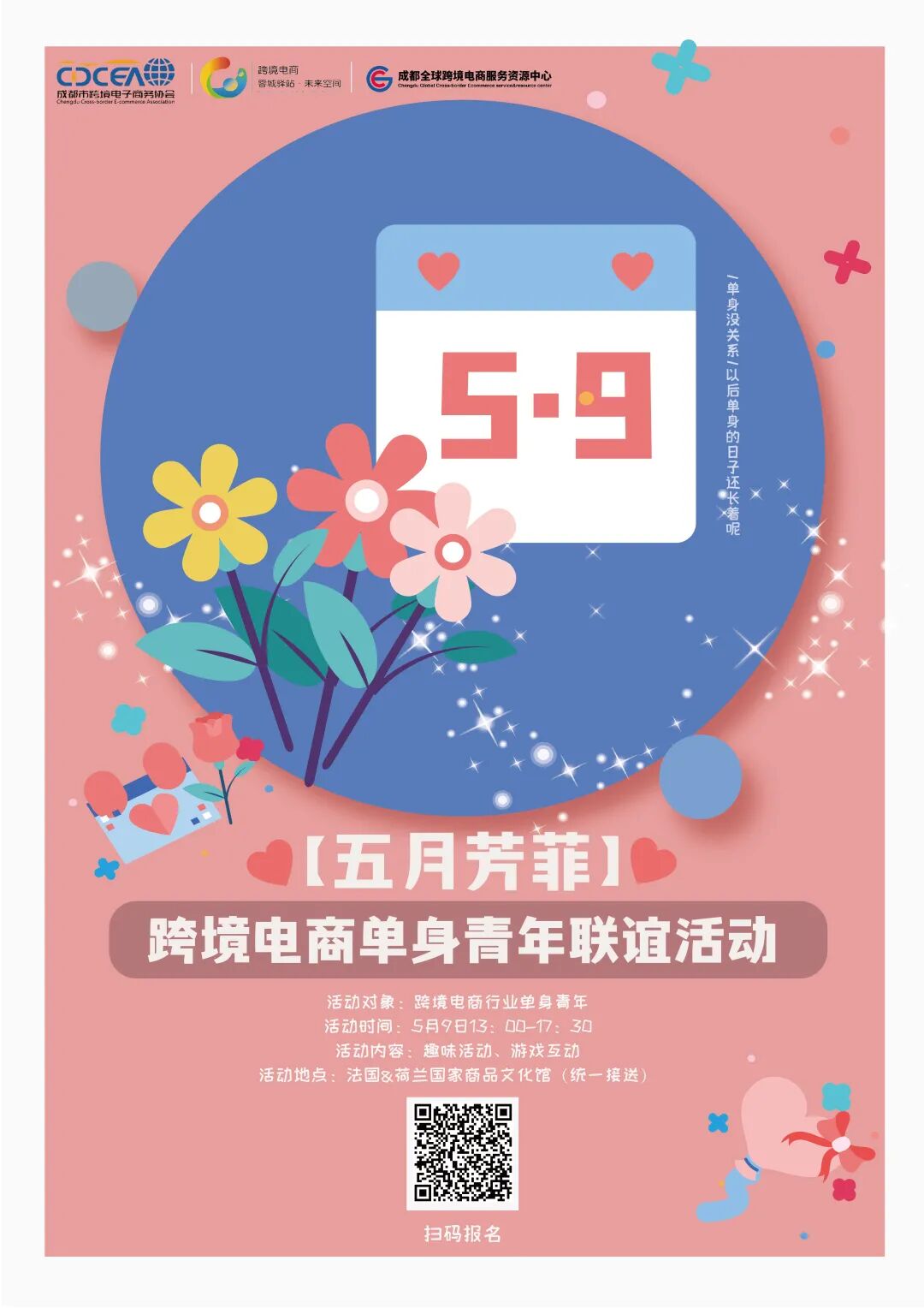 3、其他事宜:本次活动仅限单身青年参与,报名视为未婚承诺;成都市跨境电子商务协会会员企业同事优先。