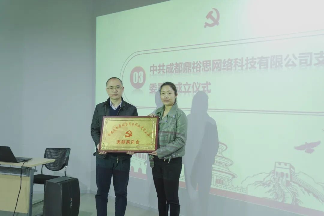 为加强跨境电商行业党的领导,强化政治引领,服务企业发展,成都跨境电商行业综合党委致力于推动行业企业“组织覆盖、工作覆盖”。经过前期培育和帮扶,中共成都鼎裕思网络科技有限公司支部委员会得以批复成立。动员会上,由成都跨境电商行业综合党委书记吴悦同志宣读了成立批复,并颁发了党支部牌匾。授牌结束后,成都鼎裕思网络科技有限公司党支部刘娟同志带领全体党员面对党旗重温入党誓词。