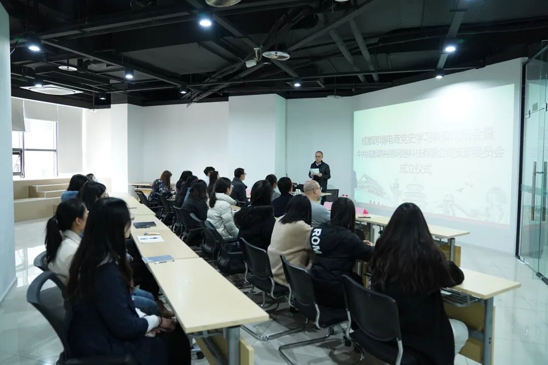 2月26日,成都跨境电商党史学习教育动员会暨鼎裕思党支部成立仪式在成都鼎裕思网络科技有限公司党建活动室成功举行,认真学习贯彻习近平总书记在党史学习教育动员大会上的重要讲话精神,部署开展跨境电商行业党史学习教育工作。