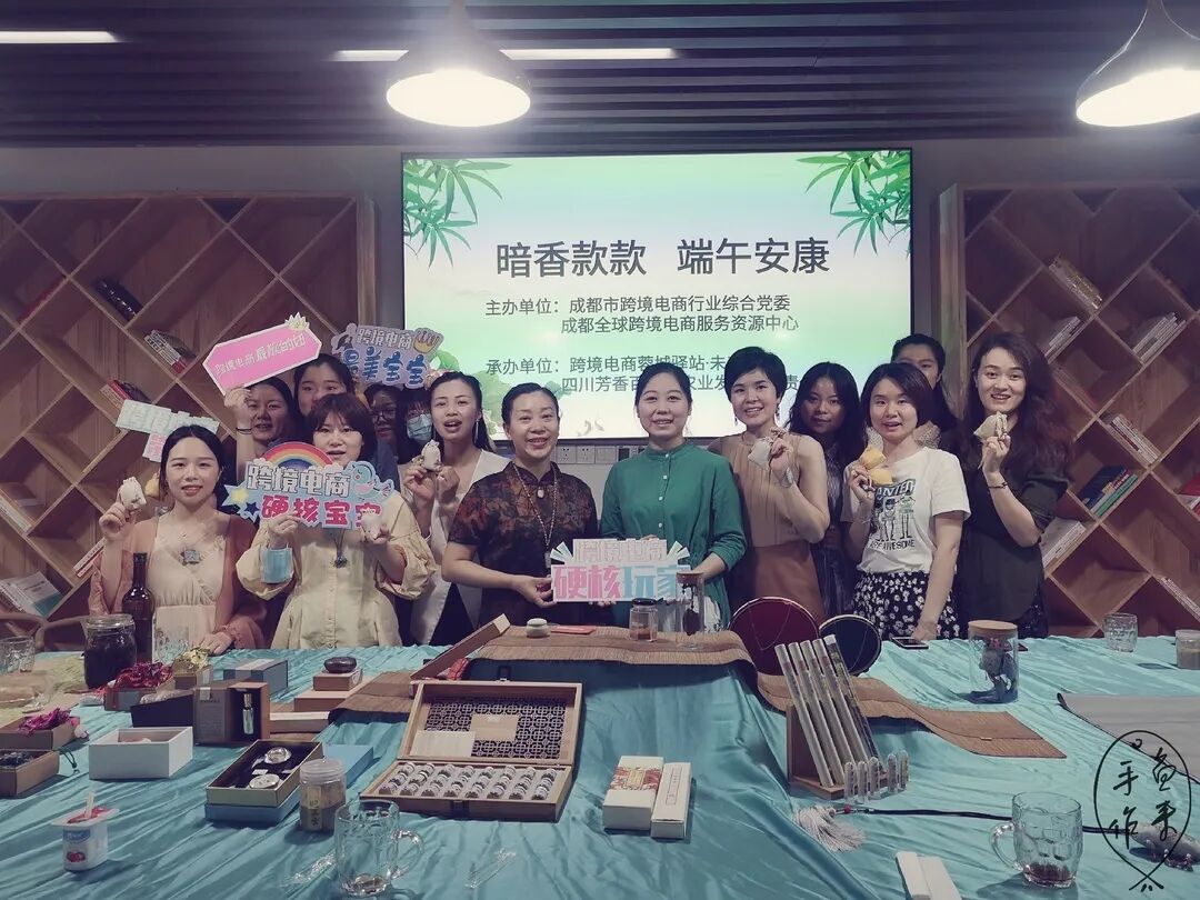 2020年6月12日成都跨境电商蓉城驿站·未来空间以围绕经济抓党建,抓好党建促发展的工作方针,积极探索行业党建工作新举措、新途径,组织行业党员、职工开展了一场别具特色的主题活动,找准了行业发展和党建工作的结合点,党建工作也提高到了一个新的水平。利用这次“暗香款款 端午安康”主题活动,结合中国传统香药,开展了一场别具特色的借助中国传统的香料讲述中国的传统文化,在这种氛围下传递真正的中国精神,传递真正的党建工作精神。让传统香药行业与跨境电商借助党建活动室有一次质的交流,促成之后的合作。