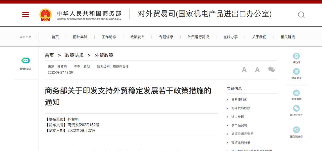 关注 | 商务部关于印发《支持外贸稳定发展若干政策措施》的通知