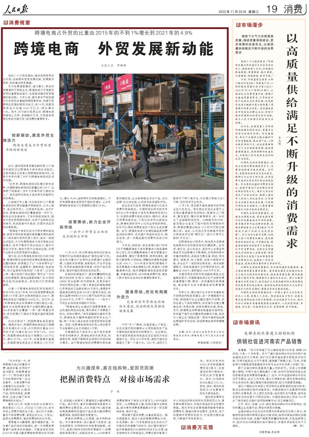 走出去也引进来,跨境电商进口已成为消费升级新路径。中国贸促会研究院发布的《2022年中国电子商务发展趋势报告》认为,在居民消费升级的过程中,模仿式、排浪式消费逐渐淡出,个性化和多样化渐成主流,跨境电商的非中心化和全球性的特性,恰好可以满足消费者追求个性化生活的需要。此外,跨境电商进口在增加高品质消费品供给的同时,也与国产商品形成互补、相互促进,进一步激活国内消费市场活力和潜力。