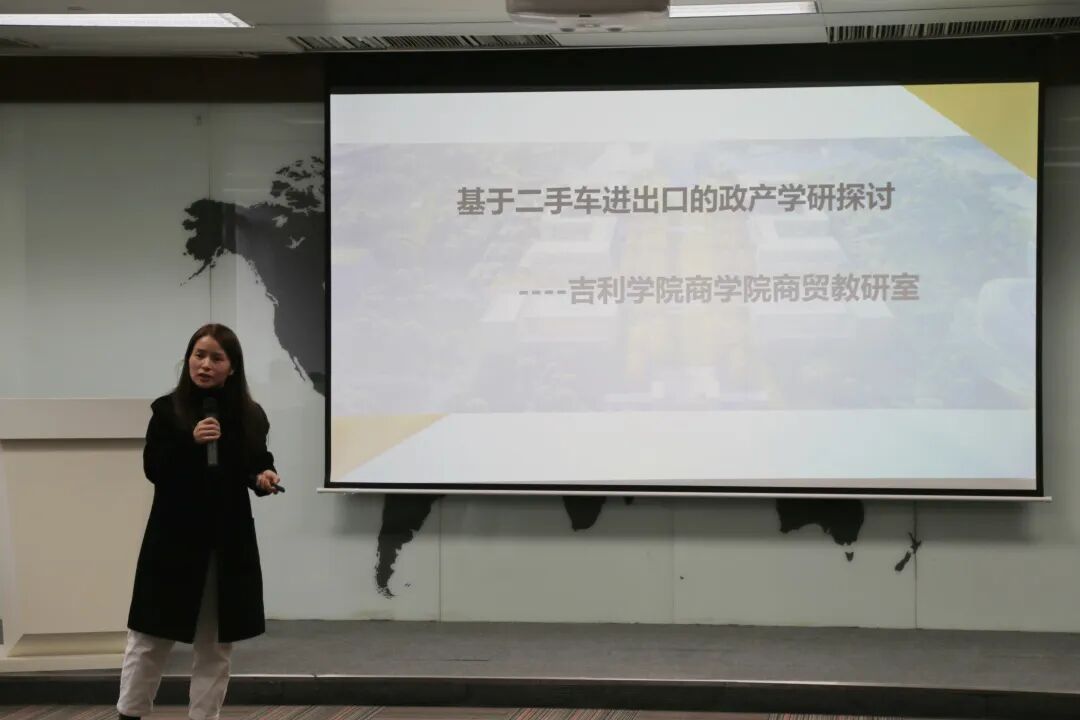 吉利学院副校长刘召为活动致辞,他指出:吉利学院将积极与政府部门、行业协会、二手车出口企业通力合作,引资引智,共同打造跨境电商二手车出海新高地。