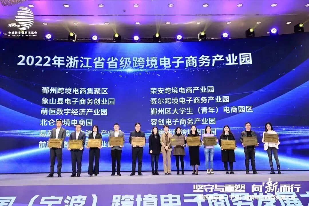 大会现场颁发第七批省级公共海外仓(非华侨仓)、首批省级公共海外华侨仓、2021年度浙江跨境电商出口知名品牌、2022年浙江省省级跨境电子商务产业园、第五批市级跨境电子商务产业园区5大奖项。