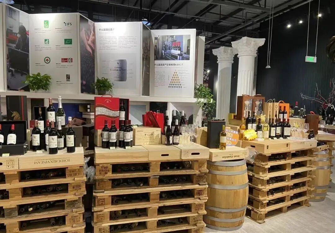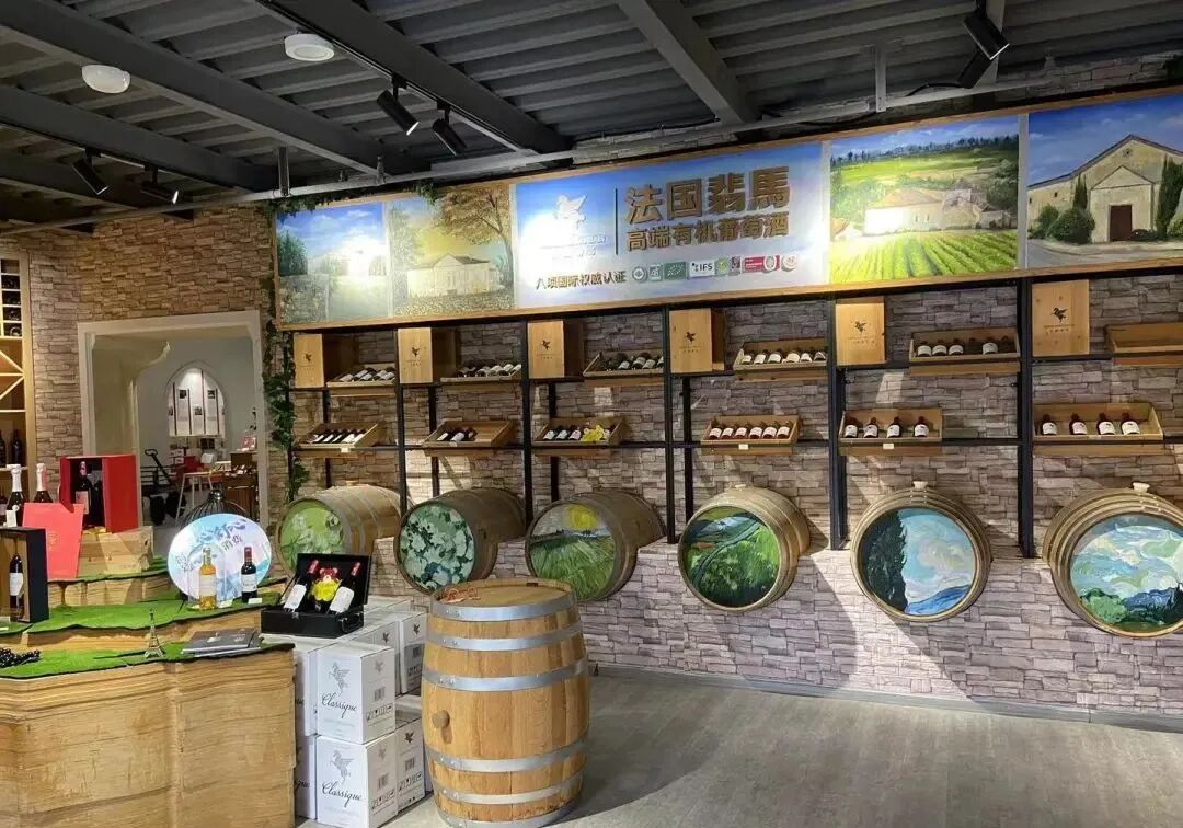 “你看,这是我们打造的具有法国风情的红酒市集,这里还营造了法式酒庄的购物空间。为了营造这些场景,我们专门从法国采购了一批当地的橡木酒桶和红酒托盘,希望让消费者在购物之余体验到红酒文化。”