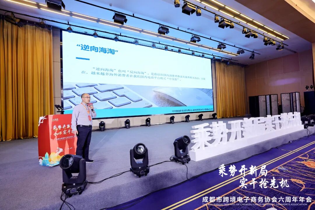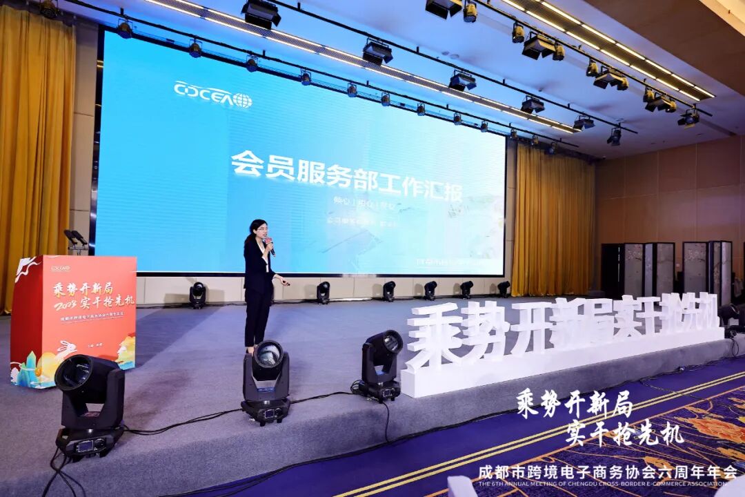 随后,成都市跨境电子商务协会副秘书长吴悦先生带来2023跨境电商行业发展趋势报告,协会会员部部长彭爱玲女士就会员服务工作及取得成效做了具体汇报。