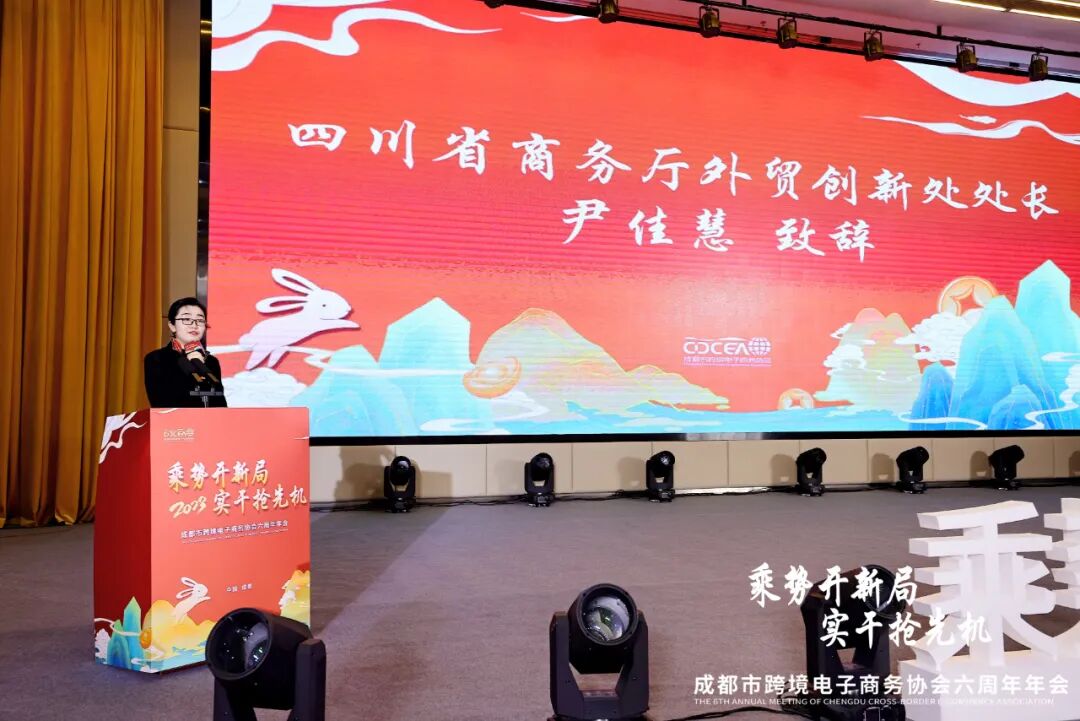 四川省商务厅外贸创新处处长尹佳慧女士在致辞中表示,跨境电商是建设贸易强省、服务业强省和国际消费目的地奋斗目标中不可忽视且最具勃勃生机的重要力量。协会的发展历程,承载和见证的就是跨境电商在全省发展征程中不断发挥更大作用的过程,省商务厅愿意与行业协会和企业一道,精诚团结共同努力,服务新发展格局,服务高质量发展。