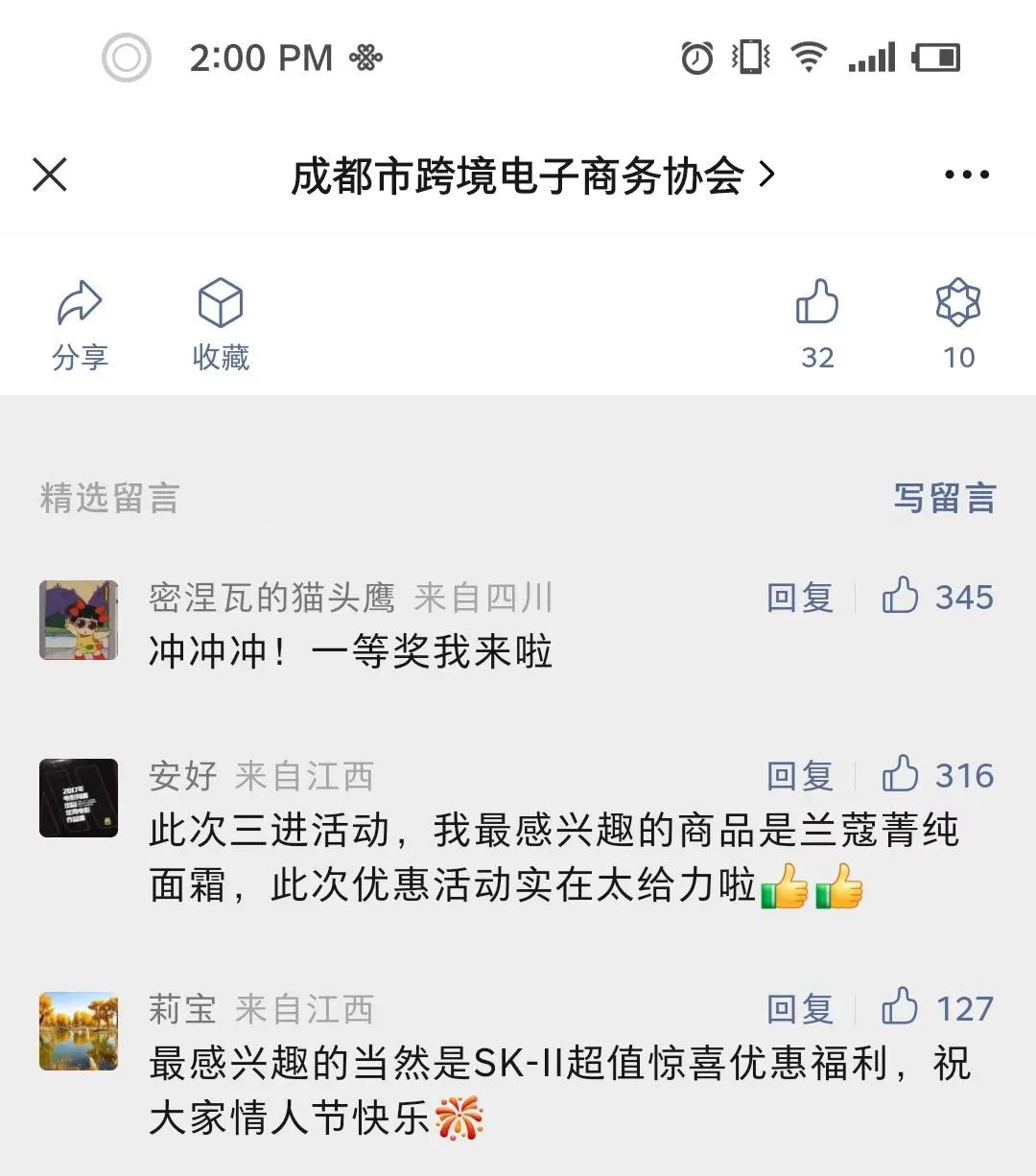 为响应市政府关于促消费稳生产的号召,积极应对当前错综复杂的国际贸易形势,培育跨境电商外贸新模式新业态。2023年2月14日-2月17日,在中国民生银行成都分行营业部举办的“成都出发 蓉购全球”--民生银行情人节专场活动圆满结束。