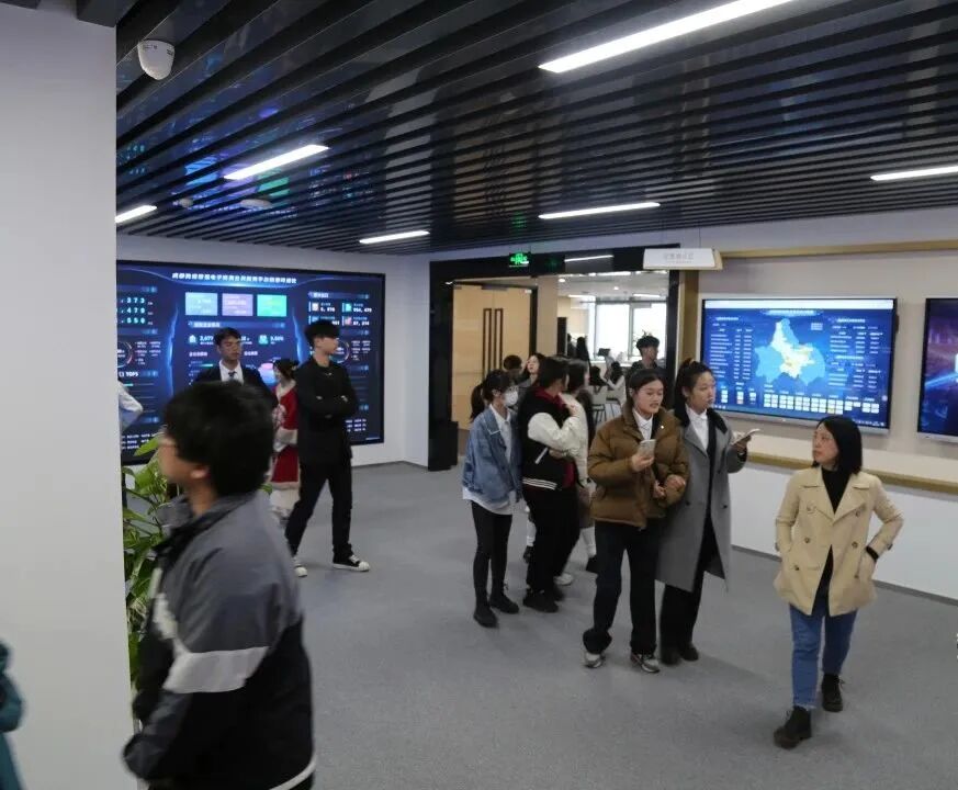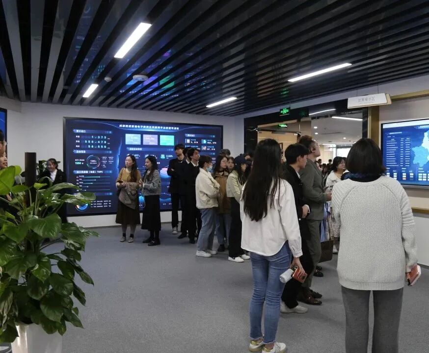 师生们共同参观成都全球跨境电商服务资源中心,实地了解成都跨境电商行业情况。