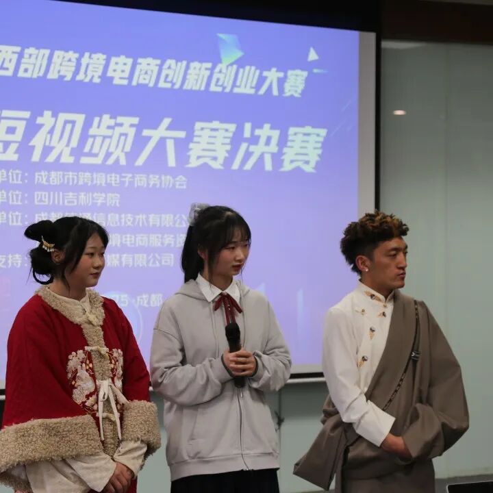 在四川省商务厅、成都市商务局指导下,由成都市跨境电子商务协会主办的第二届中国西部跨境电商创新创业大赛——短视频大赛于2023年3月25日在成都全球跨境电商服务资源中心顺利落下帷幕。本届大赛聚焦跨境电商创新创业之短视频创作,自2022年10月发起,共吸引了川渝19所高校参与,经过一路角逐选拔出25支队伍进入决赛路演环节。由专家评审团、学院领导、企业和媒体嘉宾及15名指导老师出席,共105名参赛学生参加了本次路演决赛。
