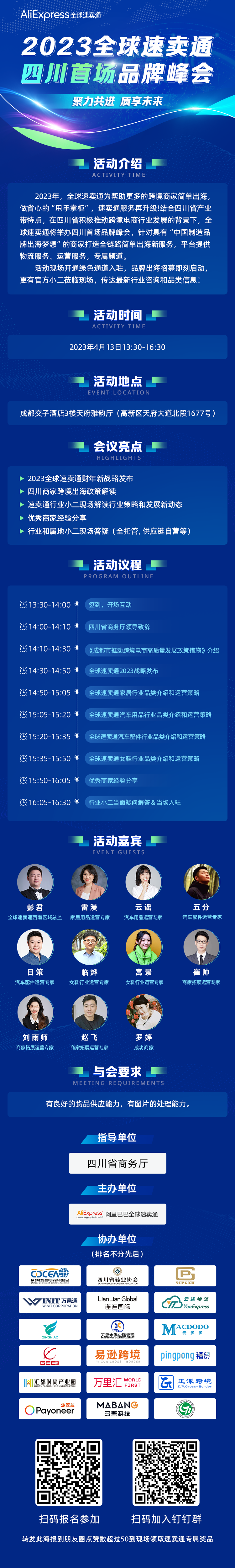 活动预告 | 2023年全球速卖通四川首场品牌峰会来啦!
