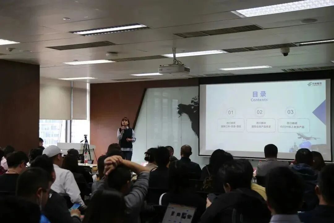 协会副会长单位中国邮政集团有限公司四川省分公司国际公司业务经理申宁为大家分享了邮政物流解决方案,从价格定位以及可供多样化选择的产品种类和服务体系等多个方面,为众多参会者带来了干货满满的分享。