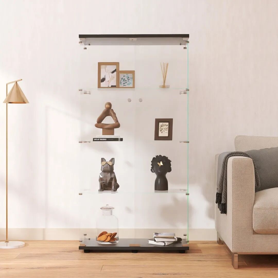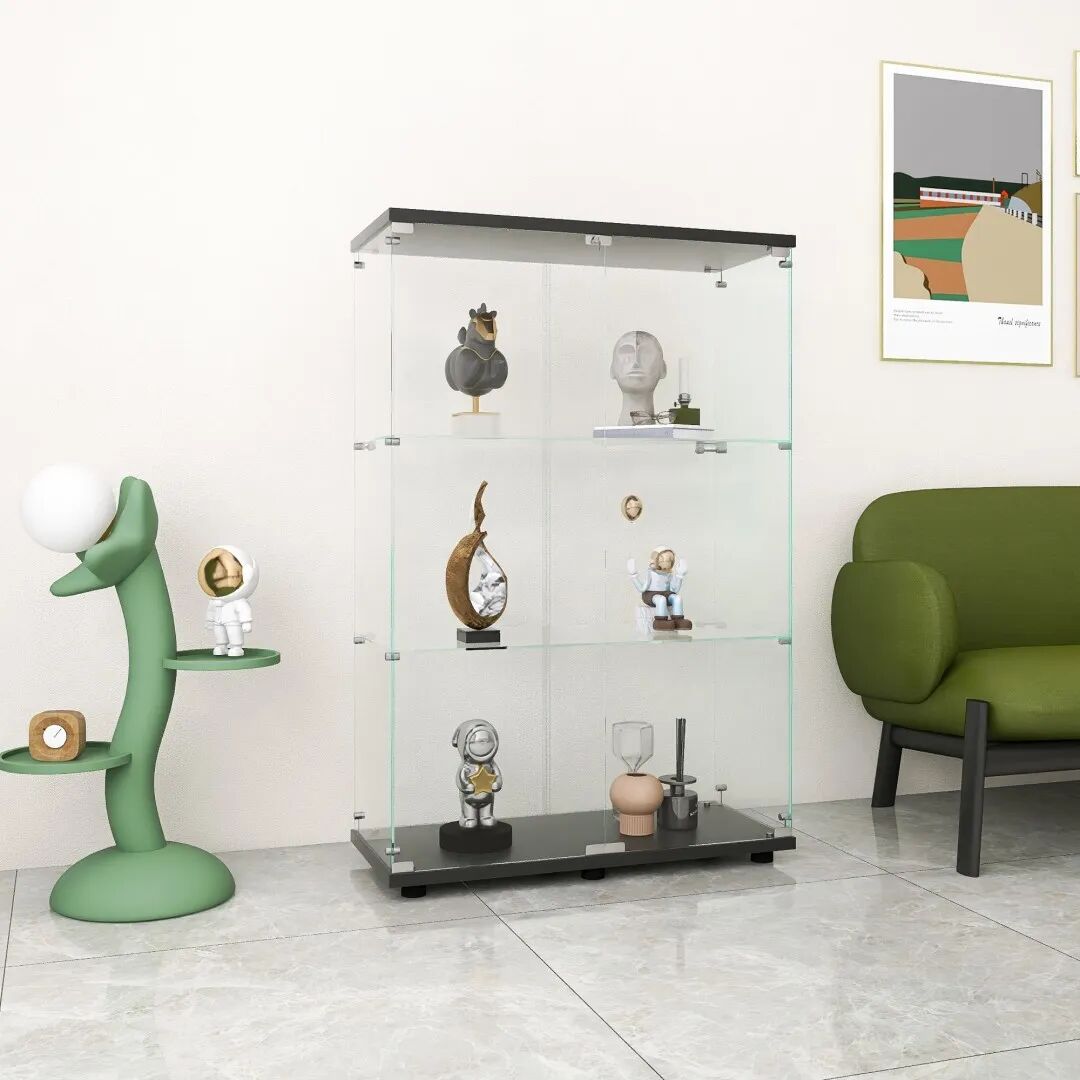 由钢化玻璃制作的展示柜,用于展示珠宝,手办,包包,瓷器,美酒等各类的收藏品及想要展示的物品,玻璃通透,视觉效果好,整体安装简便,外观大方,安全耐用,是用来展示美丽物品的好帮手。