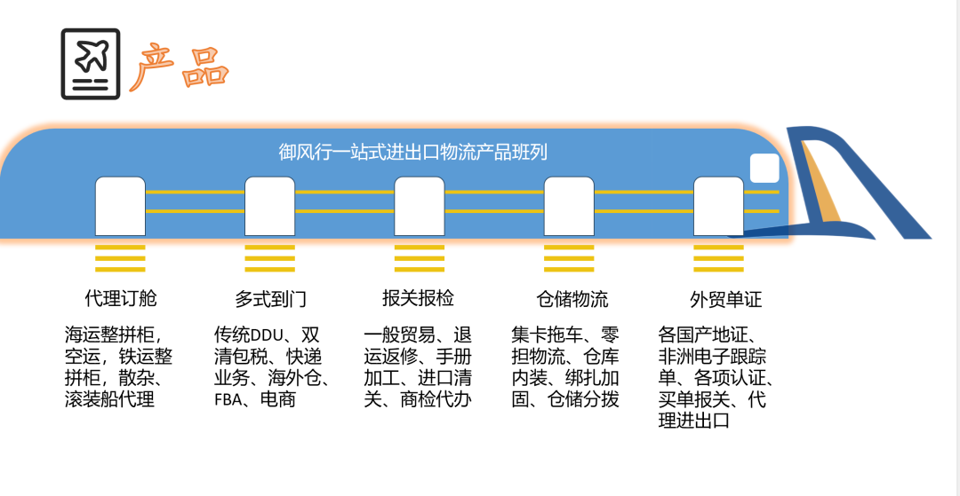 御风行物流集团专业经营国际运输业务,向海内外客户提供海、陆、空进出口货物运输服务。御风行物流集团以上海为基地,建立全国性货运服务网络,并一直致力于为客户提供高服务、高品质、高标准的一站式标准化智能国际物流解决方案。