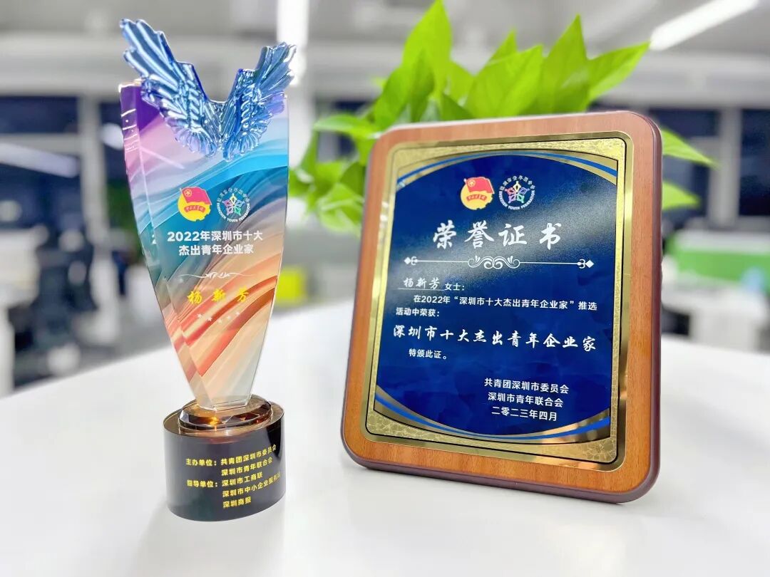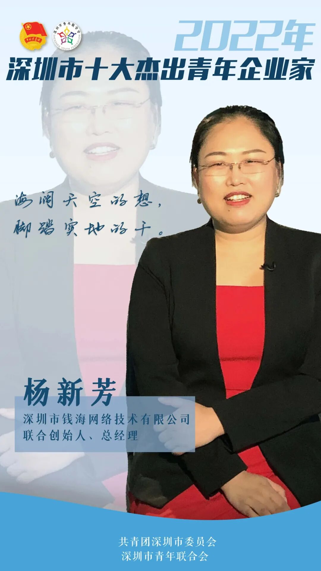 Oceanpayment联合创始人杨新芳女士通过层层筛选与评选,以及广大市民和网民的共同投票,从深圳市上百名优秀企业家中脱颖而出,与斯坦德机器人王永锟、前海中碳王祺、云里物里庄严、影石创新刘靖康、中国电子集团深圳中软孙永见、晶泰科技温书豪等共同荣获“2022年深圳市十大杰出青年企业家”这一光荣称号,为当中唯一的女性获奖者。