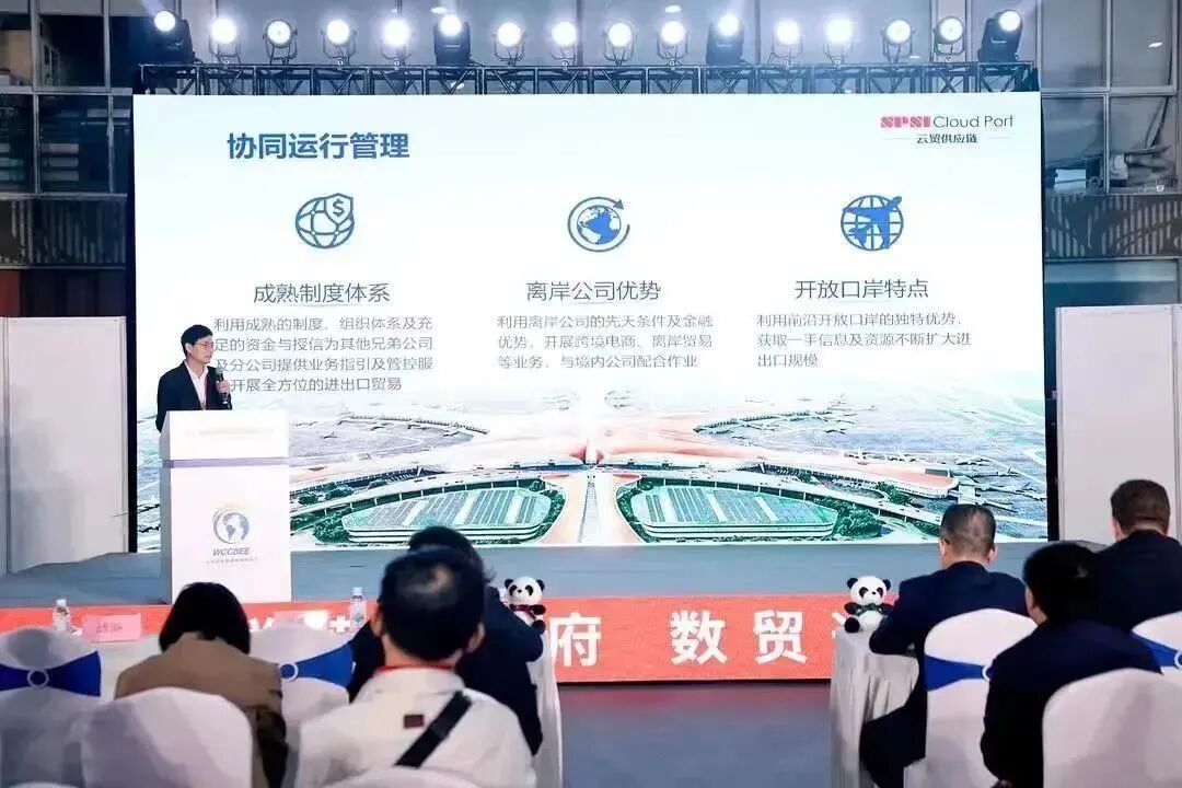 四川青港环贸科技有限公司吕端义以“用国际市场资源,打造西部区域经济新未来”为主题,介绍了公司SBBC商业模式,并针对企业社会责任,进行了可持续发展的倡议,共同推动全球绿色低碳发展。汇尚添供应链(成都)有限公司运营总监陈煜以“尚品云翔国际供应链服务解析与升级”为主题,对公司在跨境电商行业的发展战略和规划以及供应链优势进行详细介绍。