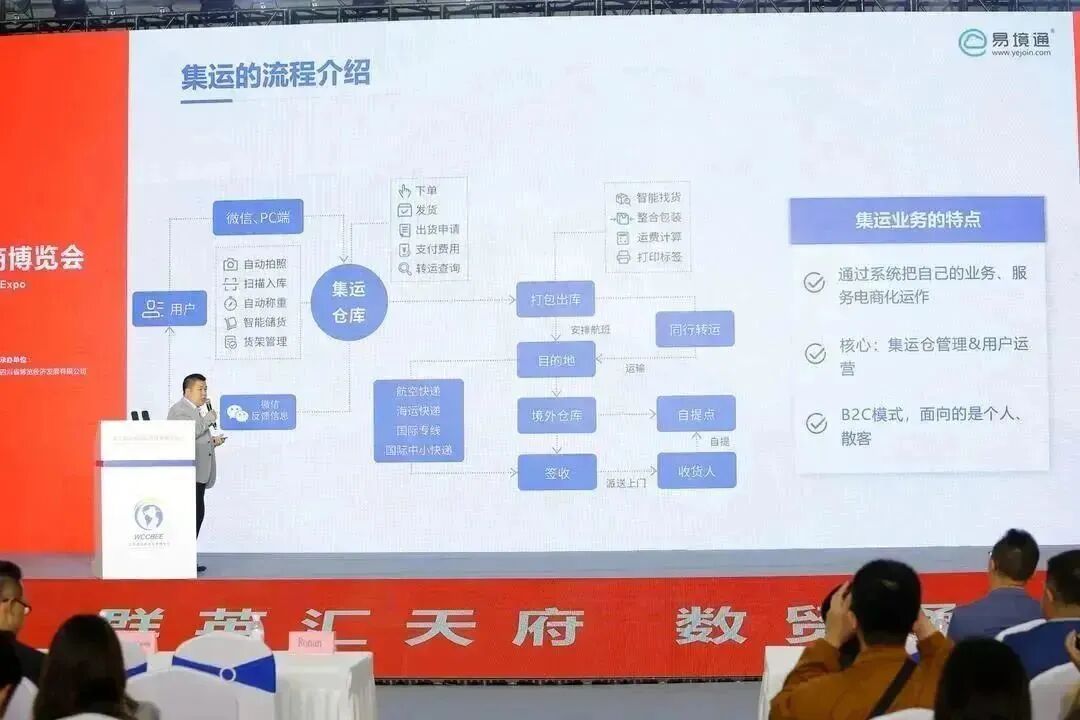 跨境物流是跨境电商产业生态链上极其重要的一环,基于当前行业形势和趋势,全球集运市场仍将保持增长势头,易境通物流科技(广州)有限公司总经理潘松涛从全球视角出发,就跨境物流前沿趋势进行解读,“相比传统物流,集运企业直接掌握终端的用户数据,更具成长性,稳定性也更强”,在随后的圆桌论坛环节,潘总与中国邮政四川省分公司国际公司总经理徐昆、广州淘集物流总经理贺焕文、成都澳斯顿总经理蔡宇就目前集运市场发展及“逆向海淘”新赛道进行更深入的探讨。