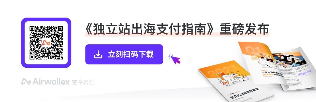 2023年4月,Airwallex空中云汇重磅发布《独立站出海支付指南》,旨在为出海商户,搭建一套易读、易用、易上手的独立站支付知识体系,减轻商户对跨境支付板块知识储备不足的普遍焦虑,帮助商户在独立站出海大潮中,敏捷应对复杂外部环境的挑战,加速全球增长步伐。