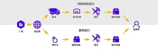 目前跨境电商进口商品主要有两种模式,直购进口和网购保税模式。“保税仓发货”的商品适用的就是网购保税进口模式。商家提前将自己的产品通过物流等渠道进口到在保税物流中心或海关特殊监管区域内的仓库,消费者从电商平台下单后,商家从货物所在区内仓库清关出仓后通过国内快递送到消费者手上。
