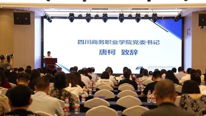 四川商务职业学院党委书记唐柯致辞,唐柯指出,职业教育集团是职业院校、行业企业等组织为实现资源共享、优势互补、合作发展而组织的教育团体。组建成立四川外贸创新发展职教集团,有利于搭建整合政、行、校、企四方资源的平台,纾解外贸创新人才严重不足的困局,化解“学用脱节”的矛盾,对提升职业教育服务经济社会发展能力,促进四川外贸高质量发展具有重要的意义。