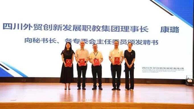 会议选举四川商务职业学院副院长康璐任理事长,成都市跨境电子商务协会副秘书长吴悦任常务副理事长,西南民族大学经济学院教授尹忠明、西华大学经济学院党委书记邱刚等担任副理事长。政、行、校、企四方代表共同为集团揭牌。四川省商务厅领导向新当选理事长、副理事长颁发聘书,理事长康璐向秘书长、各专门委员会主任颁发聘书。