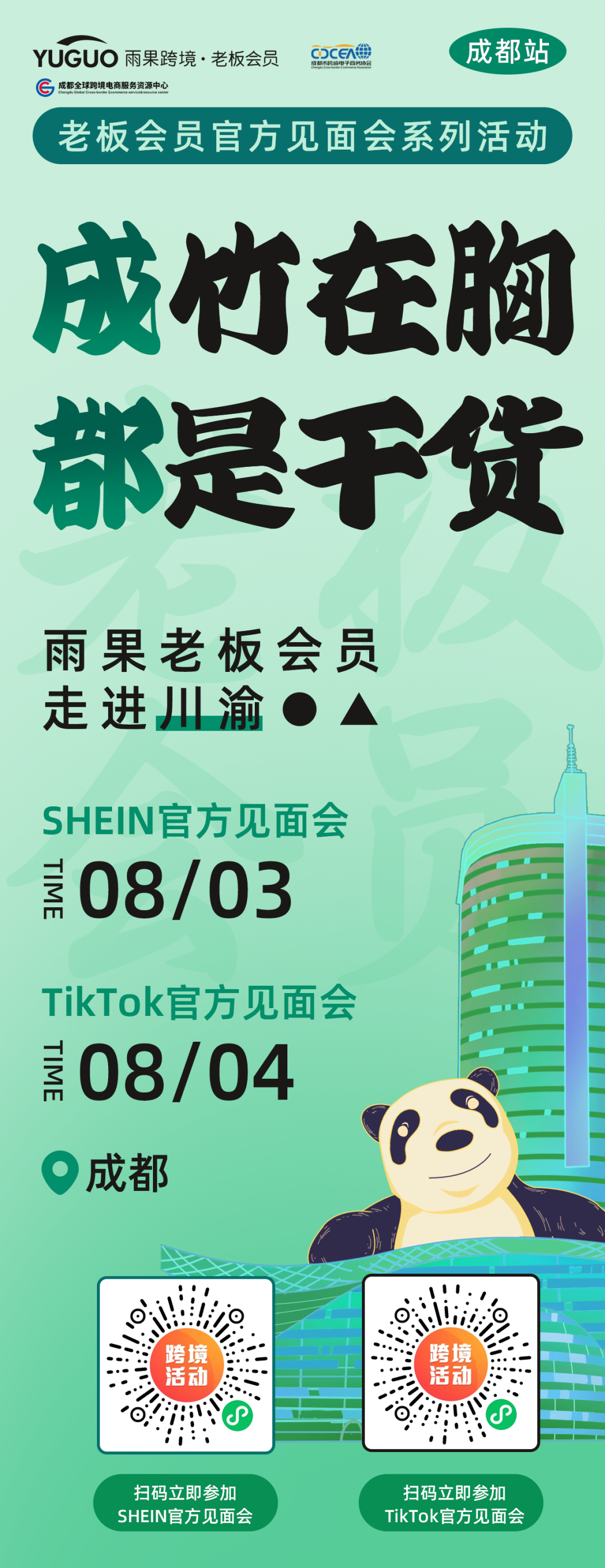 活动邀请 | 雨果跨境老板会员携手TikTok、SHEIN官方团队首次亮相成都,带来千亿“暴利”商机!